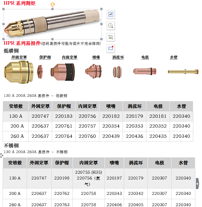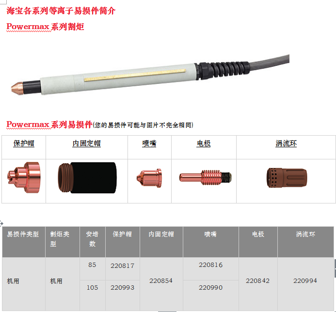 海寶系列等離子易損件
